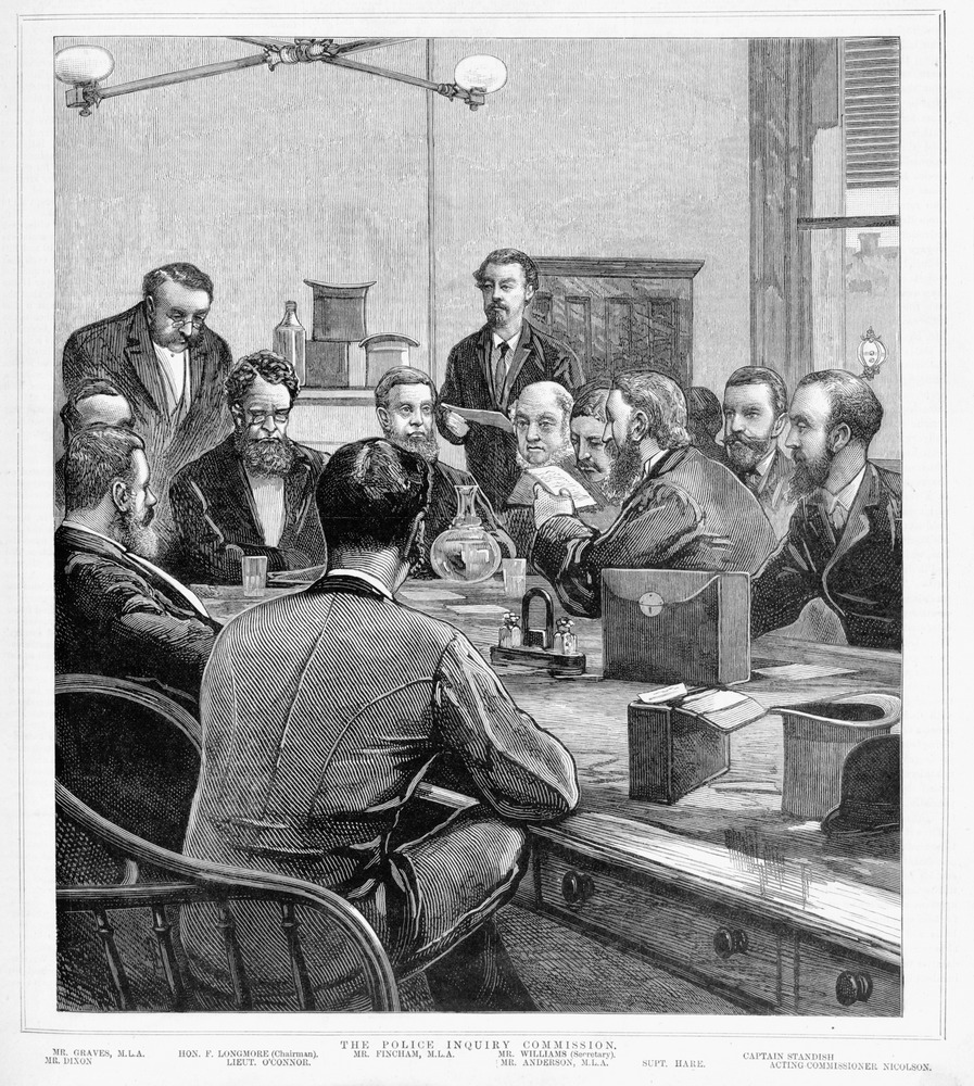 The following extracts come from Superintendent Hare’s testimony during the 1881 Royal Commission. We begin with Hare’s account of the events leading up to the siege and his involvement in the early stages, including his injury. We close on Hare recounting some of his frustrations with the police that were to be working with Aaron Sherritt, as well as a brief account of a discussion with the “Diseased Stock Agent” about the armour.