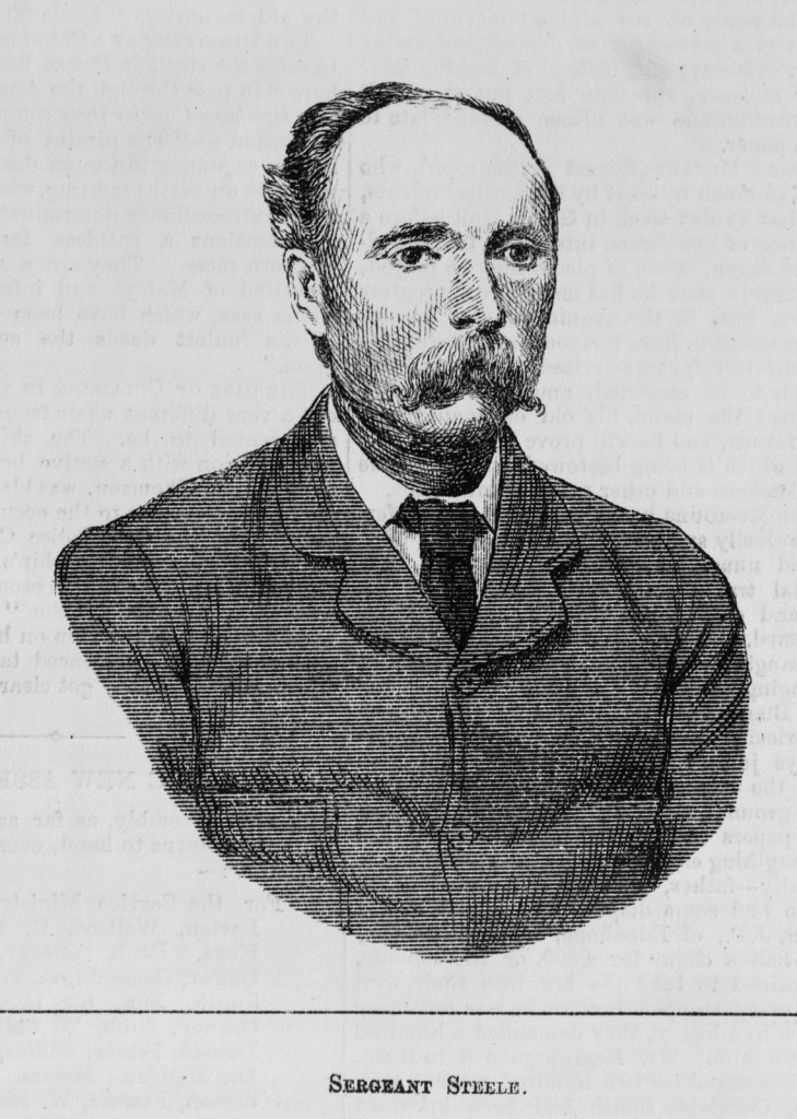 After starting, the police struck up a casual conversation with Kelly about his gang, and one remarked that he was the only man in it. Ned replied that Byrne and Hart were plucky, trustworthy fellows. Sergeant Steele here interjected that Hart was a mere boy, and that none of them were so good shots as they had thought themselves to be. The prisoner thereupon fired up, rose from his seat, and offered to fight Sergeant Steele there and then. He was in the act of pulling off his coat when one of the constables – Mathieson, I think – interfered and pacified him. The special train consisted only of an engine, carriage, and guard’s van.