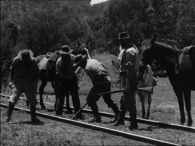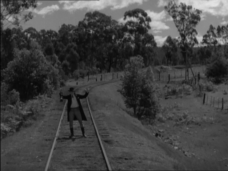 Dan and Steve watch for the train and upon seeing it run into a creek. Curnow goes into a shed by the tracks and takes a lantern. As Ned is told the train is coming, Curnow stands on the tracks to stop it.
