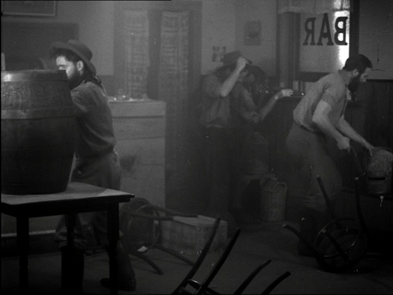 Immediately upon realising the train has stopped, the bar patrons panic. Ned suggests that he can go outside and draw fire away so that people can escape, but instead stands reloading his pistol and chatting to Joe as the police surround the pub. Dan starts firing out of the window and shooting police dead. Shot after shot hits its mark and sends troopers toppling. This is the first depiction of Glenrowan wherein there are police plucked off, one after another despite the fact that no police were ever killed at Glenrowan.