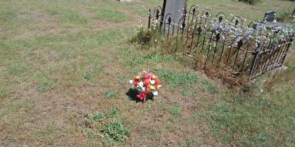 Mid-morning we visited Beechworth Cemetery and Georgina laid flowers on Aaron Sherritt’s grave. Though the grave is unmarked, there is a website that provides an interactive map with which you can find where people are interred based on the burial records. Using this we managed to find an official grave, which was something of a relief given how many alternative locations we had been told by people.