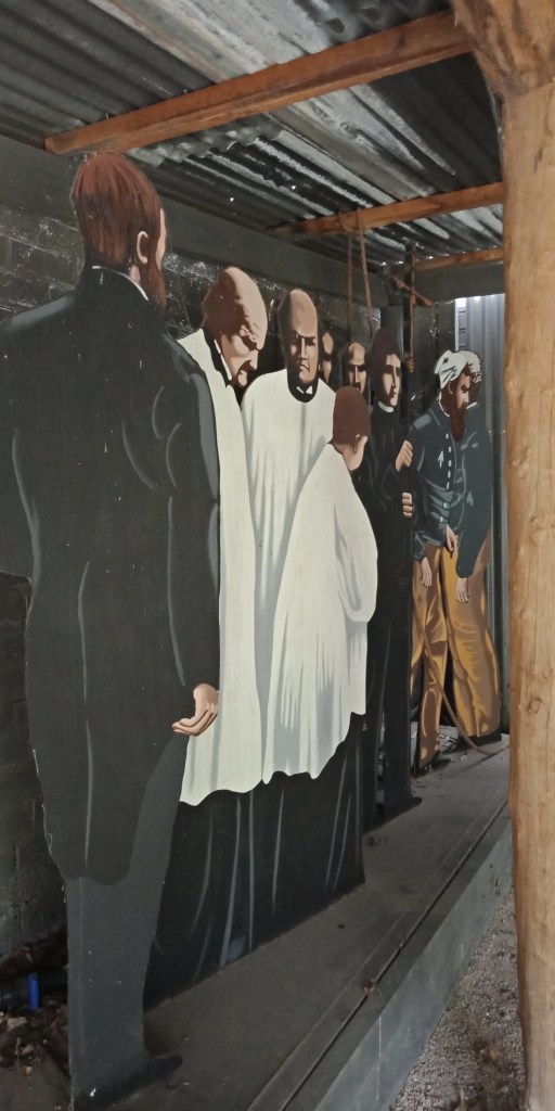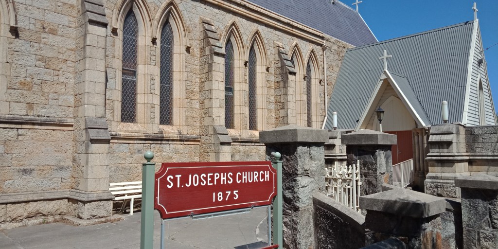 Near to the hospital is St Joseph’s church, where Father Tierney married Aaron Sherritt and Ellen Barry on Boxing Day 1879. It’s still a functional church so the only thing we looked at was the outside. The wedding of Aaron Sherritt is an important part of Glenrowan and really signifies the point at which everything changes for the characters, though they don’t realise it at the time. Nearby is the Anglican church where the Sherritts would attend services when John Sherritt wasn’t warring with the vicar.