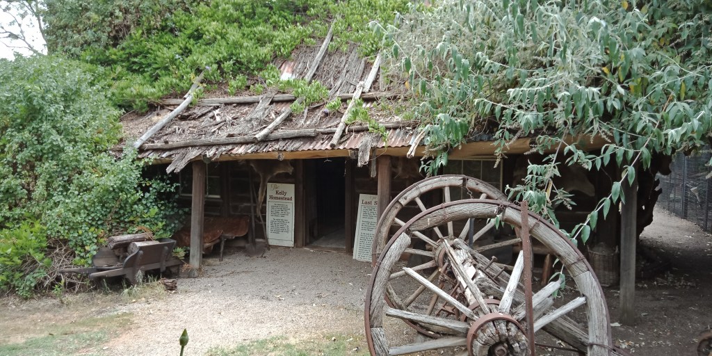 The next day we visited Kate’s Cottage to take a look around the museum and replica homestead. The museum was the same as on previous visits: a tiny and very condensed collection of news clippings and antiques to set the vibe as well as two replica suits of armour and a death mask. There are also a few relics from McDonnell’s Railway Tavern, rescued from the demolished building many decades ago, including a door lock. The set of painted portraits were a familiar sight, having remained exactly as they were since before my first visits to the town in the 1990s.