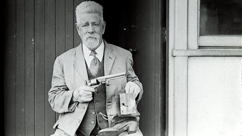 During the last few moments of freedom enjoyed by Ned Kelly he waged a revolver duel at close quarters with Jesse Dowsett, the guard of the railway train that had taken the police to Glenrowan. Kelly was hanged, but Dowsett is still hale and hearty.