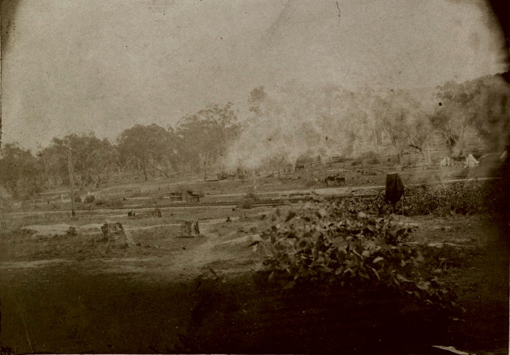 On Saturday morning the commission went by road from Benalla to Glenrowan, passing through Greta. En route a short stay was made at the residence of Mrs Kelly, mother of the late outlaws, Ned and Dan Kelly. Her residence, a four-roomed slab hut, with a bark roof, stands in the middle of a paddock comprising about 40 acres. It is within a short distance from a mountain called Quarry Hill, whence a good view of the surrounding country can be obtained. Within the paddock there were two or three horses and as many cows, and there were a few fowls and a tame kangaroo about the house. But the place presented a gloomy, desolate appearance. There was a very small kitchen garden, but there was no other land under cultivation. Some of the panes of glass in the windows were broken, and, excepting that some creepers had very recently been planted at the foot of the verandah posts, no attempt had been made to beautify the house, or make this home look homely.